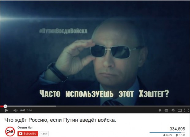 0952GMT: This last week a hashtag has appeared in Russian-language tweets #путинвведивойска (“Putin send troops”). As with all hashtags, it’s hard to know how much influence they really have and whether all the people using the hashtag bear this sentiment — it’s used as much by people opposing the view or exploiting it to advertise things of their own; even those likely using it sincerely seem almost a parody: