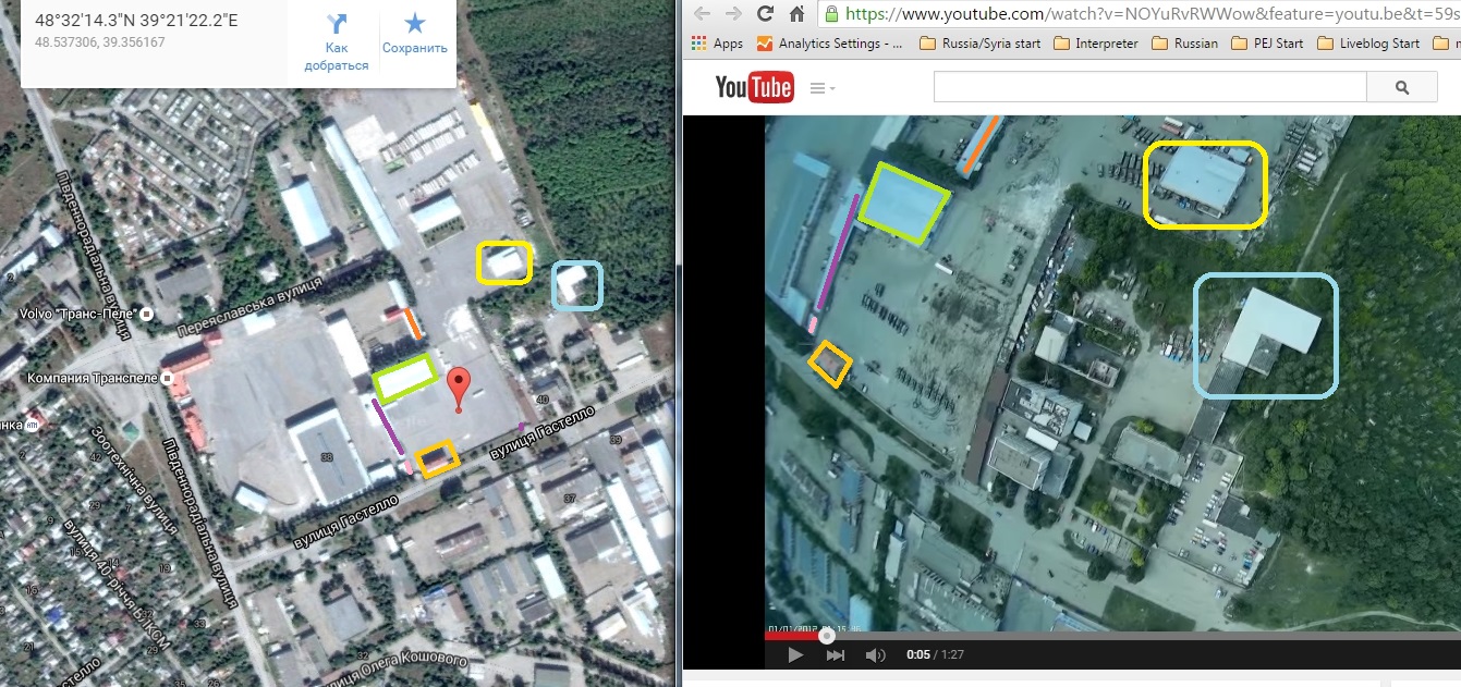 The Interpreter has verified the location — this video was taken over southwest Lugansk city. Similar buildings are highlighted below: