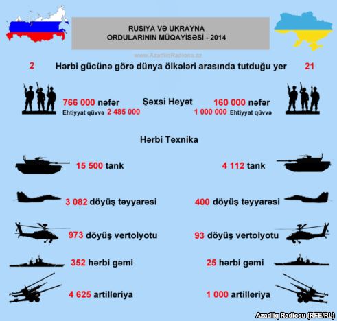 Our Azerbaijani Service has a handy infographic comparing the militaries of Ukraine and Russia. It’s in Azeri, but the icons make it easy enough to understand.