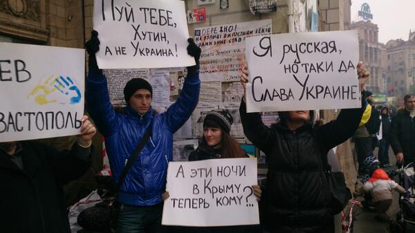'I am Russian, but yes… Glory to #Ukraine!' protest against #CrimeaInvasion in #Kiev pic.twitter.com/O2NShwQerW