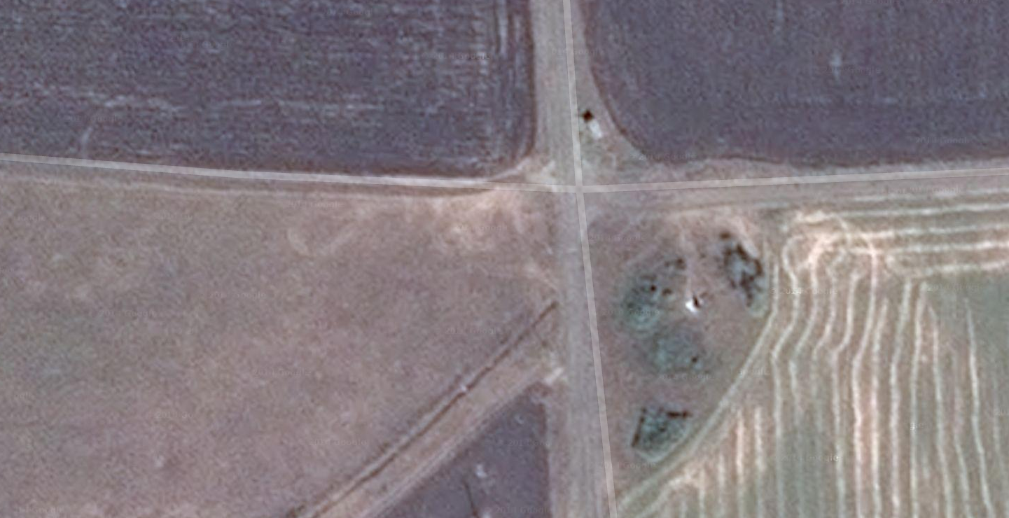A clump of foliage in the field visible on the map can be seen in the video at 0:19.