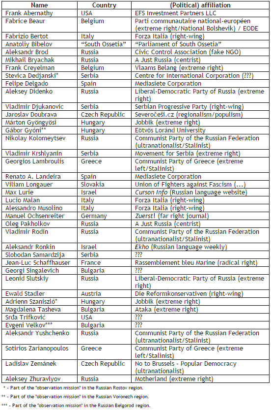 This imposturous presentation of Belgian fascist Luc Michel, to the Russian-speaking audience, as the “organiser of the OSCE observation mission” and frequent references to the OSCE monitors allegedly present at dubious “elections” reveal the high status value of the OSCE even in the generally anti-Western context of today’s Russia.