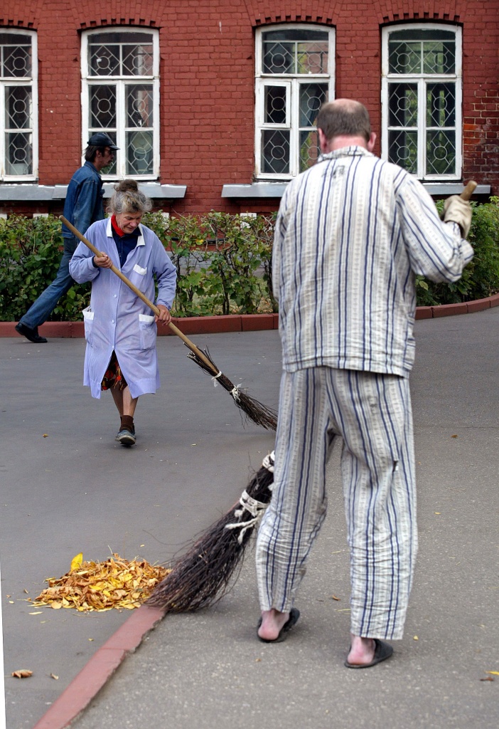 The wards are for 12 people, everyone has a bedside table and a personal place in the refrigerator. Although, of course, food brought by relatives is not accounted for, so it’s like in a prison: those who are stronger, get more. Shower time is once a week. Each ward has its day assigned: if for one it’s Monday, the next one showers on Tuesdays, and so on. Bedsheets and pajamas are changed once a week as well, and the wards are cleaned daily. Smoking is not allowed, but you can get cigarettes from a nurse, cell phones are not allowed, but you can make a call from the doctor’s office. “I do not call anybody,” says Alexei, “even if I really needed to, I would still be afraid to ask her, she might get furious.”