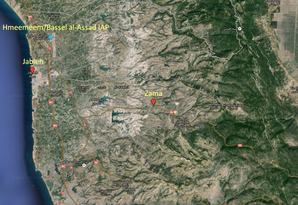 NOW Lebanon reports that a pro-regime news page for the Jableh area on Facebook claimed that the blast occurred near the village of Zama, around 12 kilometres from the airbase.