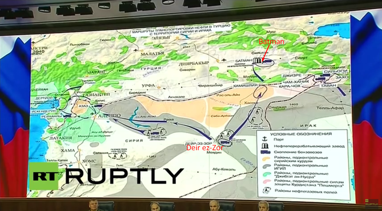 The Russian Ministry of Defence held a press conference this afternoon at which they presented their claims that Turkey is buying oil from ISIS.