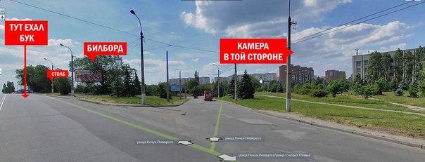 “A video is being disseminated in Ukrainian communities where supposedly the militia are hauling the shooting Buk toward the RF. But the city of Krasnoarmeysk is in the video, the billboard with the advertisement for the car dealership at 31 Dnepropetrovskaya St. Since 11 May and until now, the city has been under control of the junta’s forces, conducting the ATO! [anti-terrorist operation].