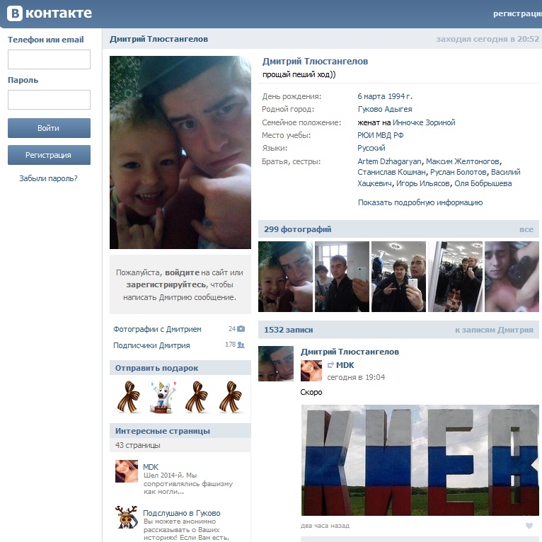 But by the end of the day it turned out that Tlustangelov's page was completely removed, with the familiar "sad dog" that stands for a "404" at VKontakte.