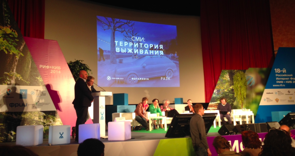 Translation: @plugotarenko Here’s how I presented the new awards yesterday named for Mr. Snowden: Internet Media Awards; ) (at RIF+KUB2014).