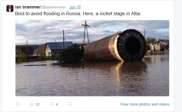 Ian Bremmer was one of the many who retweeted — and then deleted — this shocking snapshot from the floods in Altai, Russia — because it turned out to be something other than what it seemed even after getting the Reddit treatment on the forum A Normal Day in Russia. (The tweet is retrieved here from Google cache).