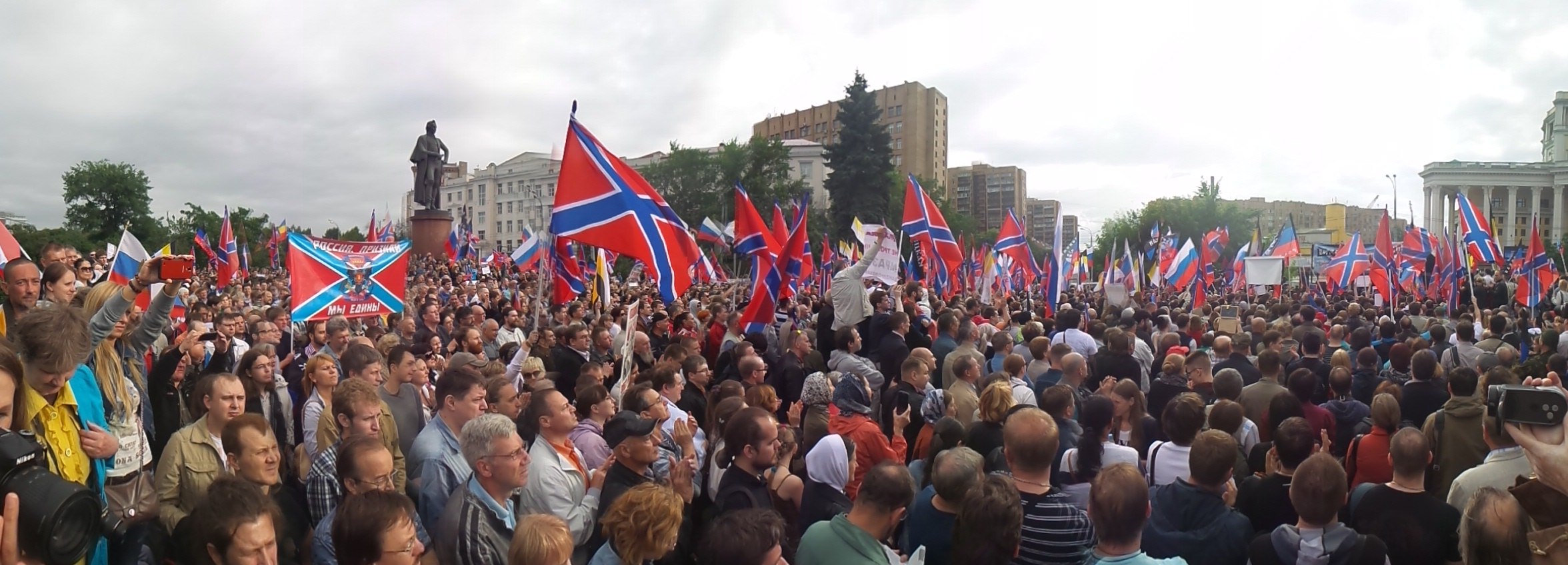 Denis Pushilin, the “people’s prime minister” of the “Donetsk People’s Republic” who is visiting Moscow, reportedly spoke at the rally although a photo was not provided.
