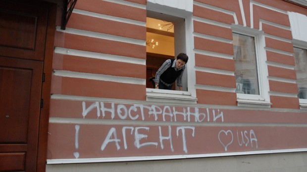 Graffiti “Foreign Agent” scrawled on Memorial building in Moscow. Photo by RIA Novosti/Yulia Klimova