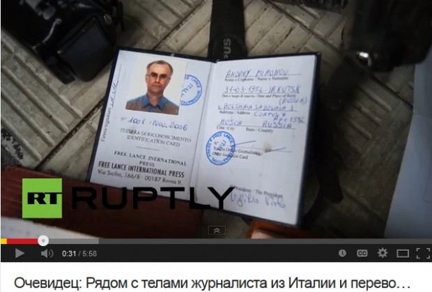 “In the village of Andreyevka near Slavyansk, Italian photo-journalist Andrea Rocchelli and his translator Andrei Mironov were killed, RIA Novosti reported. French stringer William Roguelon from Wostok Press was wounded.