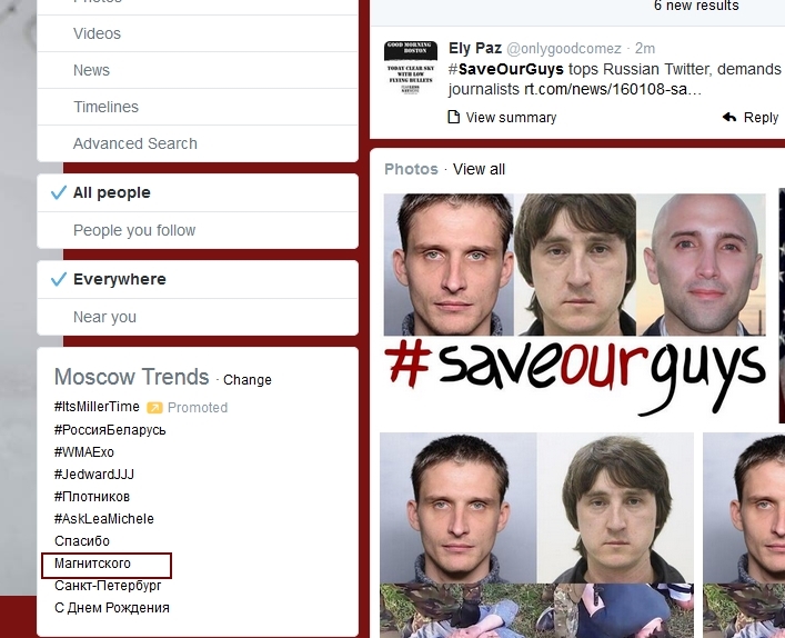When we looked just now, we didn’t see #SaveOurGuys in Moscow’s top trends, but actually the word “Magnitsky” in the top trending topics, related to the announcement of US sanctions earlier.