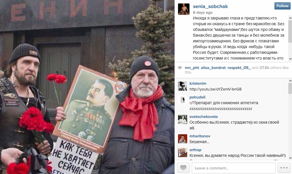 She has also continued to be an outspoken critic of the Kremlin and its allies. Recently she posted a condemnation of the “Night Wolves” motorcycle trip through Europe.