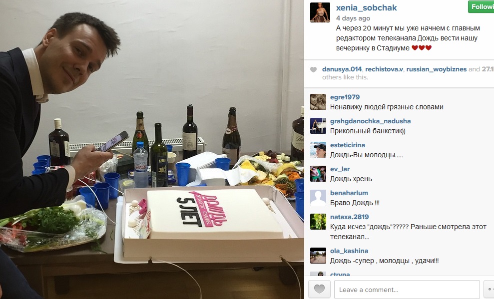 On her Instagram account, she posted the picture and wrote about plans with another journalist, Anton Krasovsky, with whom she has a regular series in Snob:
