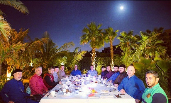 Kadyrov uploaded to Instagram a photo of the group having a late-night tea: