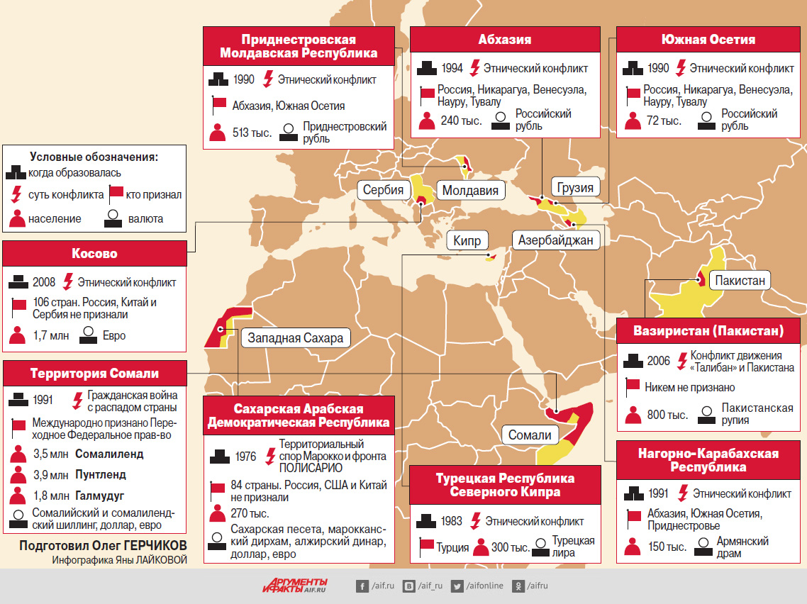 The blogger Colonel Cossad reprinted a map from Argumenty i Fakty which shows a number of such regions in Eurasia and Africa:
