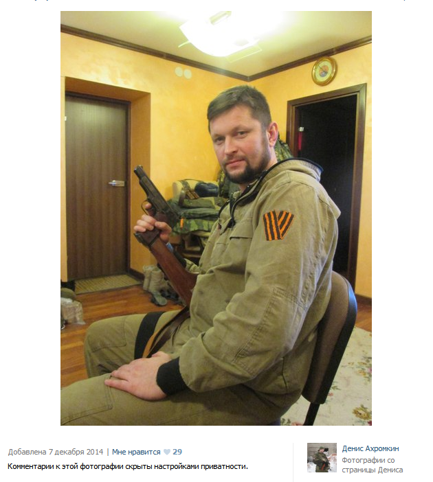 But in the last week, Akhromkov appeared in sensational news reports by journalist Andrei Trofimov who claimed that Akhromkin and another man had been arrested at the Russian-Ukrainian border smuggling guns into Ukraine. Trofimov said he had tips from Russian law-enforcement about the arrest. In his first article, he didn’t mention any names and blacked out the faces of some militants in a photo, but when Akhromkin himself issued public denials, he then did mentioned the name of him and his friend.