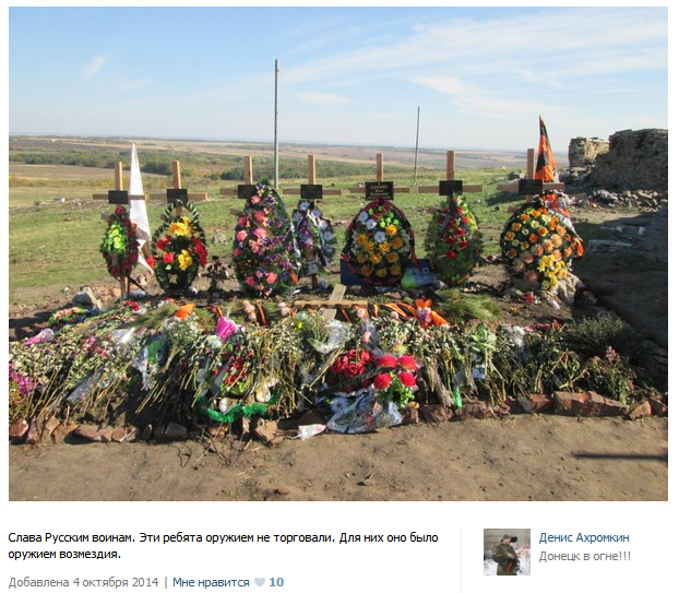 Akhromkin is also shows pictures of graves of Russian soldiers who have died in battle — he writes on the caption “Glory to Russian warriors. These men were not arms dealers, for them it was a weapon of vengeance.” It’s not clear where they are buried, but the way in which their graves are lined up so closely with the standard wooden Orthodox crosses often used to bury such soldiers in Ukraine — it’s likely it is in Ukraine. At home, they would have a headstone.
