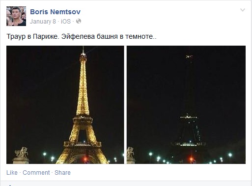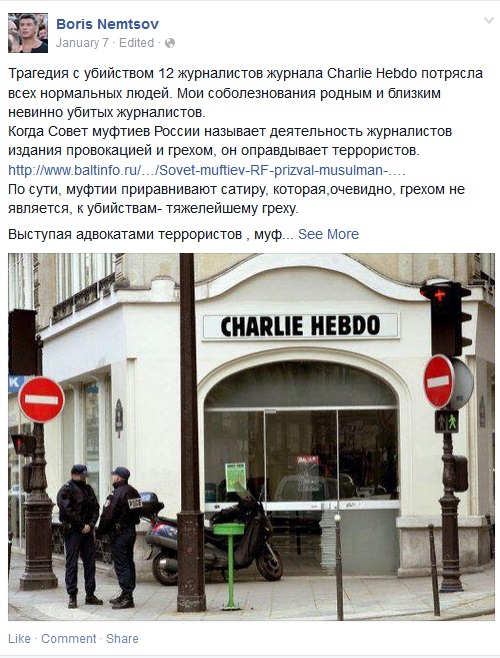 Nemtsov’s made another post on the subject of Charlie Hebdo was January 16: