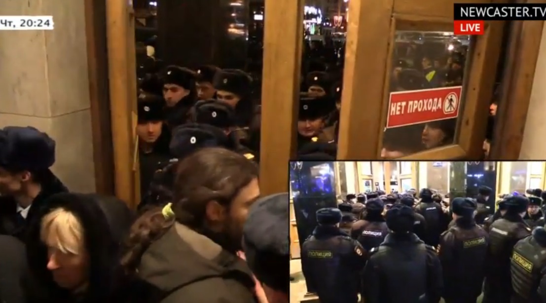 Police continue to tell demonstrators “Move toward the Metropolitan!” using the formal name for the Moscow metro.