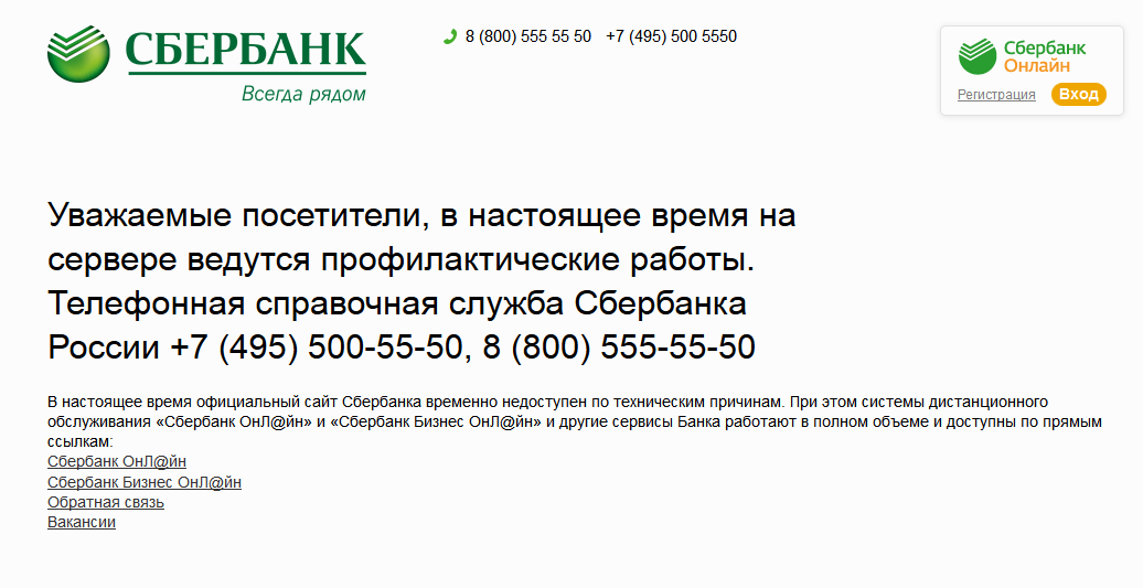 No information is available from Sberbank’s website itself, which has a notice that “maintenance work” is now being done on its servers.