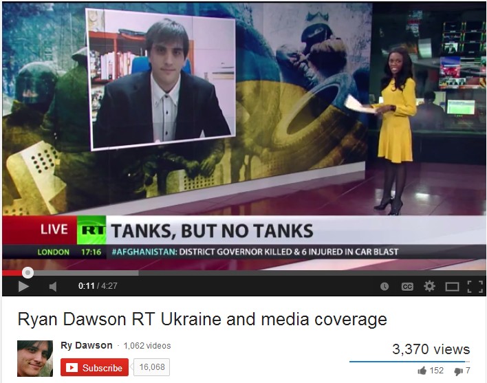 RT has given Dawson a platform to reach a vastly larger audience and, in doing so, deceptively tried to burnish his image. They’ve interviewed Dawson on a number of different subjects, identifying him to their audience in different ways depending on the context. Dawson can be well-spoken, and is willing to clean up his act and omit references to overtly offensive material like Holocaust denial or blood libels. Most importantly, since he seems to devote much of his time to internet activism, he’s readily available to fit into RT’s schedule. When they need a talking head, they can call on him to put on a tie, connect via Skype to an RT studio, and be interviewed as an expert on whatever subject they want to discuss.