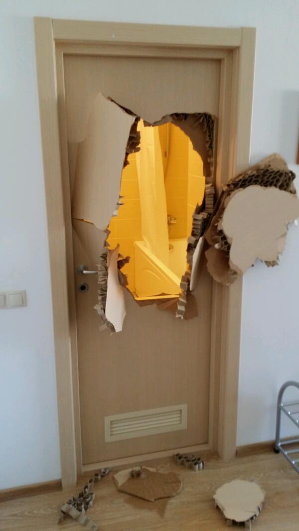Well, now there is a new “Sochi hotels are a disaster” story to add to the list. This weekend, an American bobsledder, Johnny Quinn, found himself locked in his hotel bathroom. The door was jammed, there was no phone, and so he did the only thing he could do. One of his teammates reports: