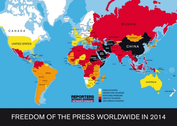 More than two decades after the Soviet Union’s implosion, the entire region still looks to Moscow, to which it is bound by strong cultural, economic and political ties. All the pomp of the inauguration of the Sochi Winter Olympics in February 2014 must not divert attention from the reality in Russia of a trial of strength between an increasingly determined civil society and an increasingly repressive state.Criticism of the regime is common since the major demonstrations of 2011 and 2012 but media self-censorship is far from disappearing. The federal TV stations continue to be controlled and, in response to the “return of politics in Russia,” the authorities have chose repression. Ever since Vladimir Putin returned to the Kremlin in May 2012, more and more draconian laws have been adopted. Activists, news media and bloggers have all been targeted. Defamation has been criminalized again, websites are being blacklisted and the range of activities that can be construed as “high treason” is now much broader. “Traditional values” are used to justify new restrictions on freedom of information, including the criminalization of “homosexual propaganda” and “insulting the feelings of believers.”