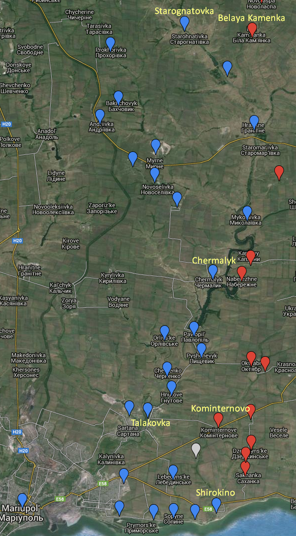 According to the DNR, Ukrainian troops fired on the villages of Belaya Kamenka, near Starognatovka, and Kominternovo, around 10 kilometres east of Mariupol.