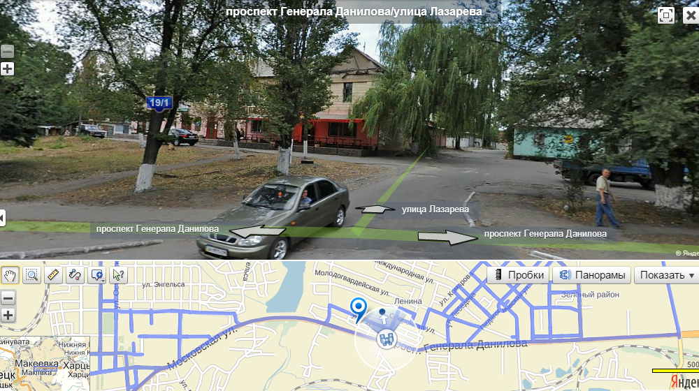 This pair of buildings can be found at 19/1 Generala Danilova Avenue on Yandex Maps Panorama.