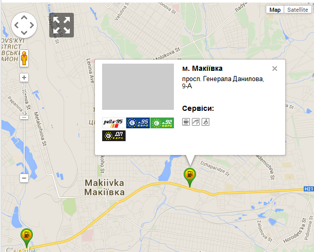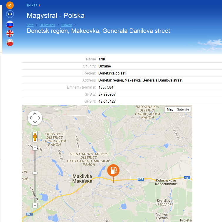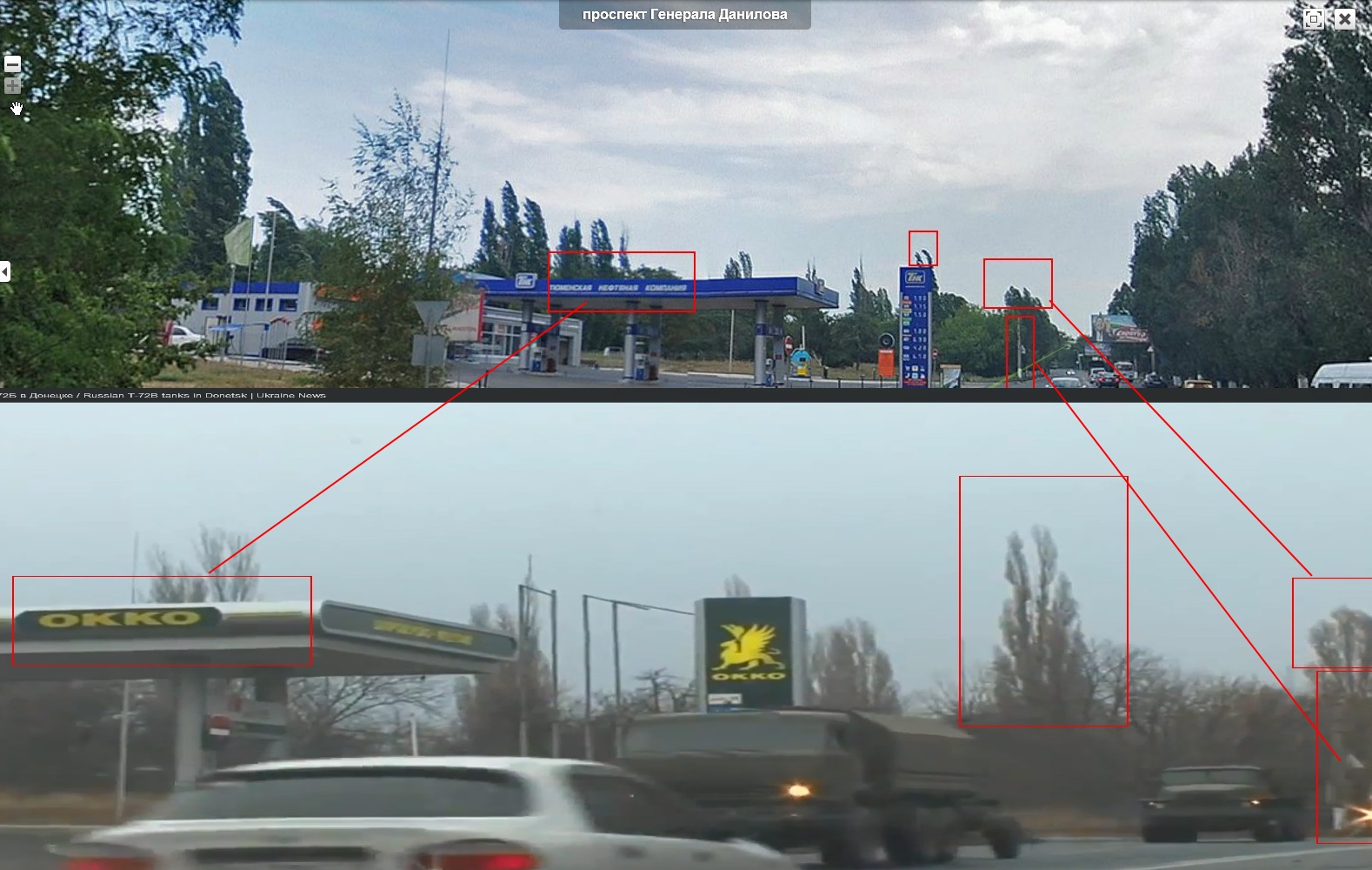 According to the company directory, OKKO has a gas station at 9a Generala Danilova Avenue, a road from Makeyevka toward Donetsk, which has been used often for convoys.