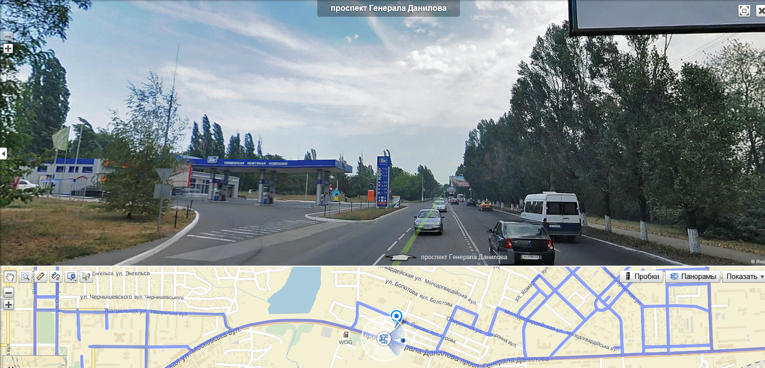 Yandex Maps Panorama shows another company’s gas station, TNK, at that location because the pictures were taken some time ago.