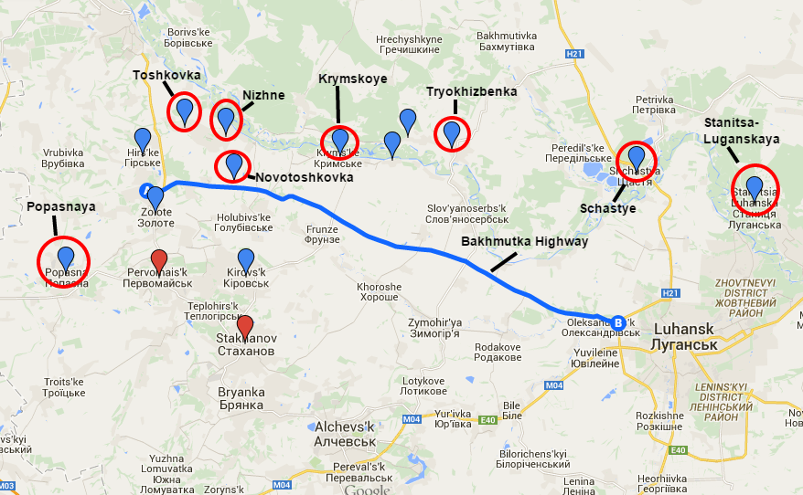 Shells also reportedly fell on Popasnaya, Schastye, Stanitsa-Luganskaya, Krymskoye, Nizhne and Novotoshkovka.