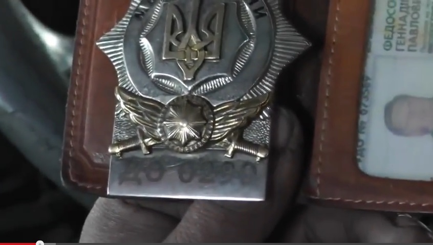 In a video uploaded to YouTube by Andriy Dzinzia on December 7 labeled “Dnipro-1 captures Donetsk DAIshnik [traffic police] terrorist,” a policeman shows passport covers from the self-declared “Donetsk People’s Republic” (DPR) as well as identification issued by the Ukrainian government showing that one individual, Gennady Pavlovich Fedosov is from the Ukrainian traffic police (DAI). Another man arrested is identified as Vladislav Grigoryevich Chernous from Donetsk, but his occupation was not indicated.