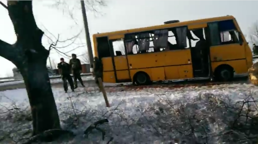 The Donetsk Regional State Administration (OGA) reported that the bus was at a Ukrainian military checkpoint outside Volnovakha when it was struck by shells, fired, the OGA claimed, by Russian-backed fighters near Dokuchaevsk.