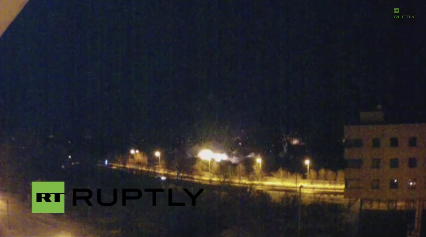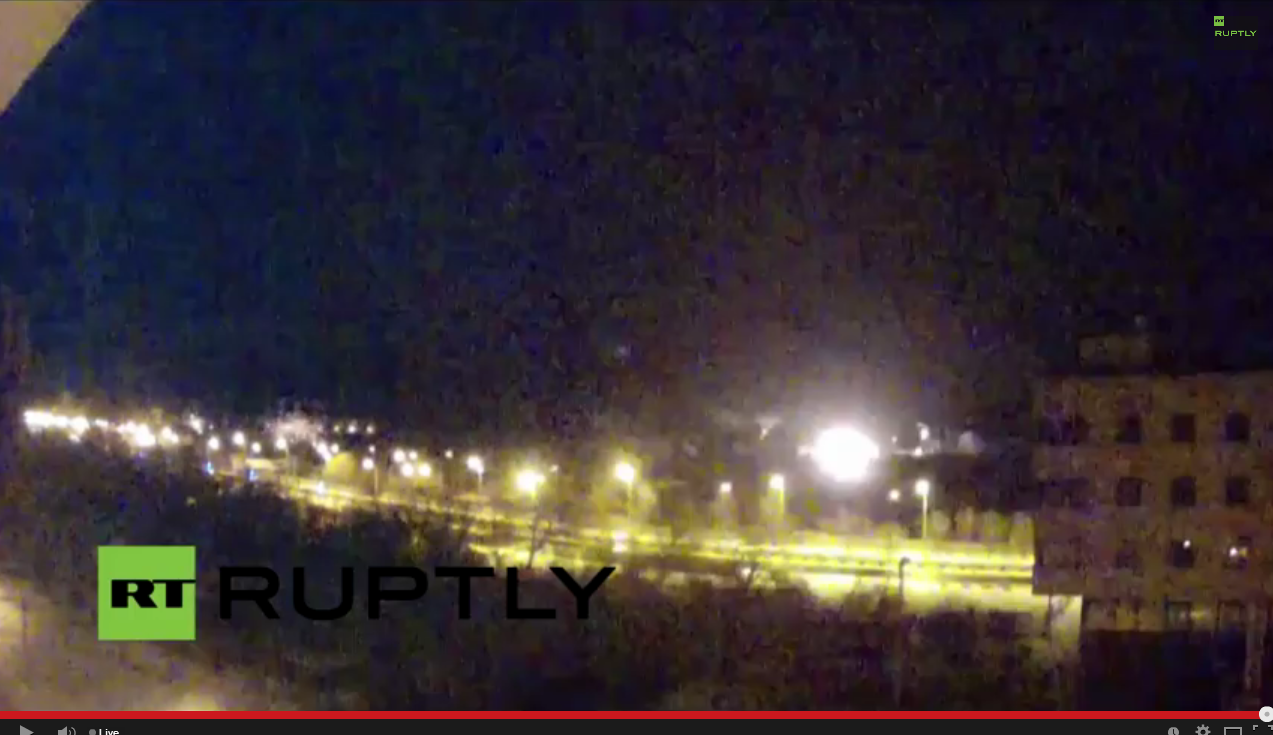 As we’ve documented below, both incoming and outgoing Grad rocket fire has been witnessed tonight near the airport. This video reportedly shows outgoing Grad rockets fired by the Russian-backed militants toward the Ukrainian military.