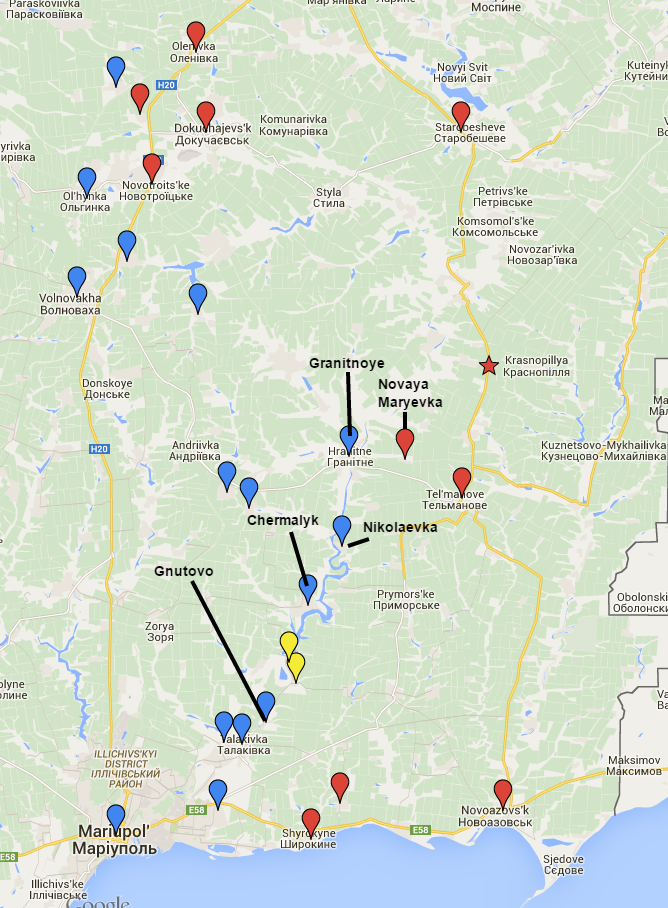Mariupol news site 0629.com.ua reports that the Ukrainian volunteer-based Azov regiment has announced that Russian-backed forces have shelled the settlements of Chermalyk, Gnutovo and Nikolaevka, in the south of the Dontesk region, to the north-east of Mariupol.