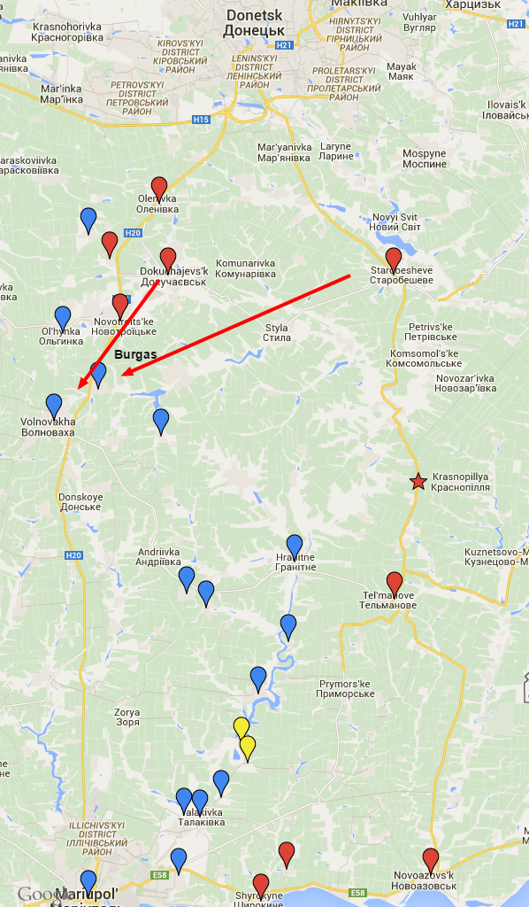 Andrei Purgin, the “speaker of the People’s Soviet of the Donetsk People’s Republic” told the pro-separatist Donetsk News Agency (DAN) that separatist fighters could not have carried out the attack as their nearest artillery was in Telmanovo, north of Novoazovsk, and that Volnovakha was beyond their range. Instead, Purgin blamed the incident on trigger-happy Ukrainian soldiers.