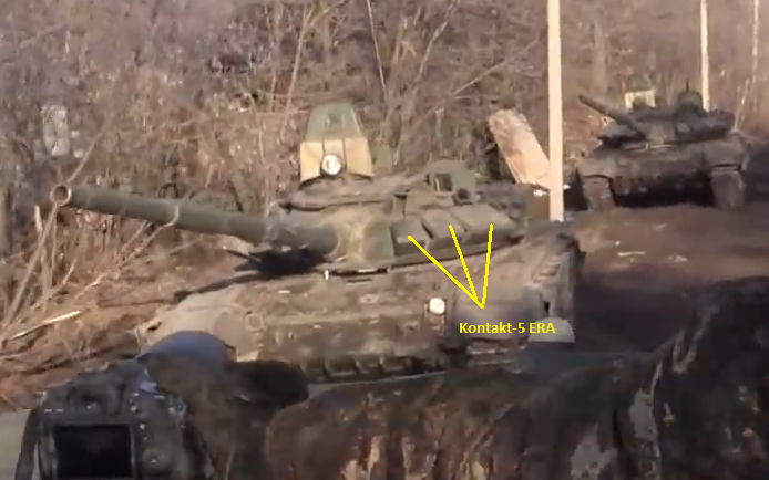 Firstly, their Kontakt-5 explosive reactive armour (ERA), which consists of large, angled pairs of plates around the turret.