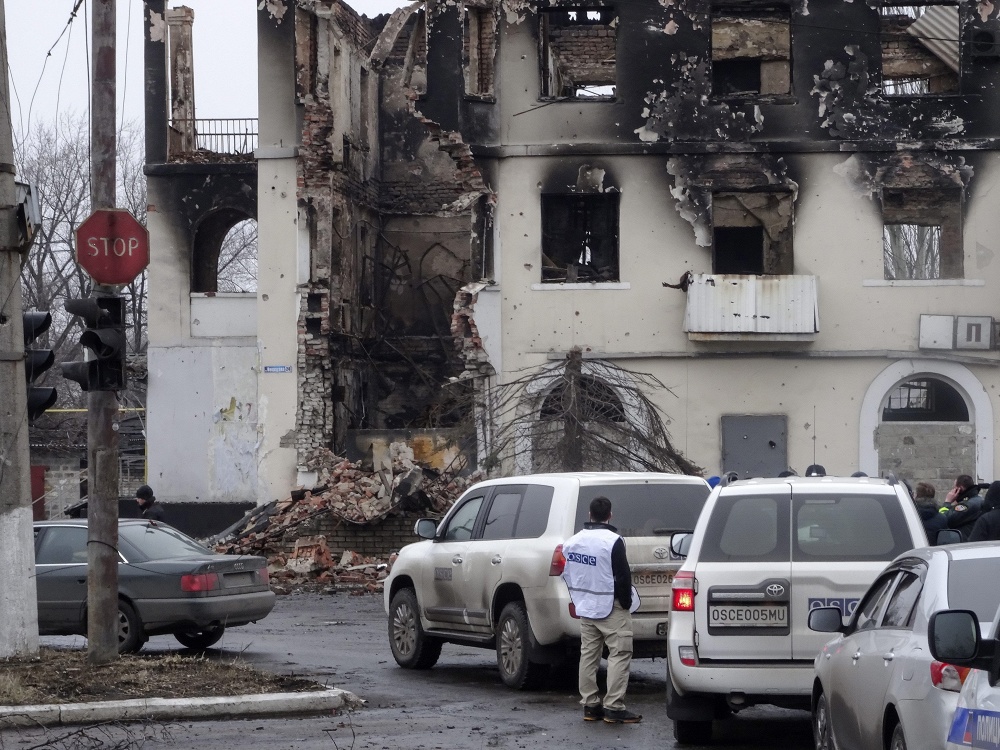 Precisely because Debaltsevo is a strategic hub, the OSCE decided to put their Joint Center for Control and Coordination, staffed by by Ukrainian, Russian and other member states’ military to monitor the ceasefire and border, in this Ukrainian-held city. Soon, the OSCE had to deal not only with problems like the Russian military misusing vehicles with the OSCE insignia and charges that the Russians were using their presence there for espionage, but with intense shell fire — and simply had to re-locate the center to the north in Soledar on February 8.