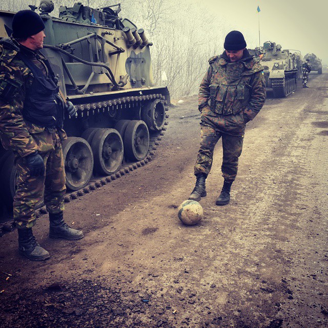 Ceasefire. The country is rejoicing. The people are full of optimism. Klimkin [Ukrainien Foreign Minister] is a great guy. Kuchma [former president] is a great guy. The president is the main great guy. Oh, how triumphantly and persuasively the order for the ceasefire was given by the General Staff! How beautiful it all was; and how well they looked in their uniforms…And the President spoke in English. And the cannons were silent and silence ensued. And a typical peaceful Sunday began…You can relax, rest from work, forget about the war…