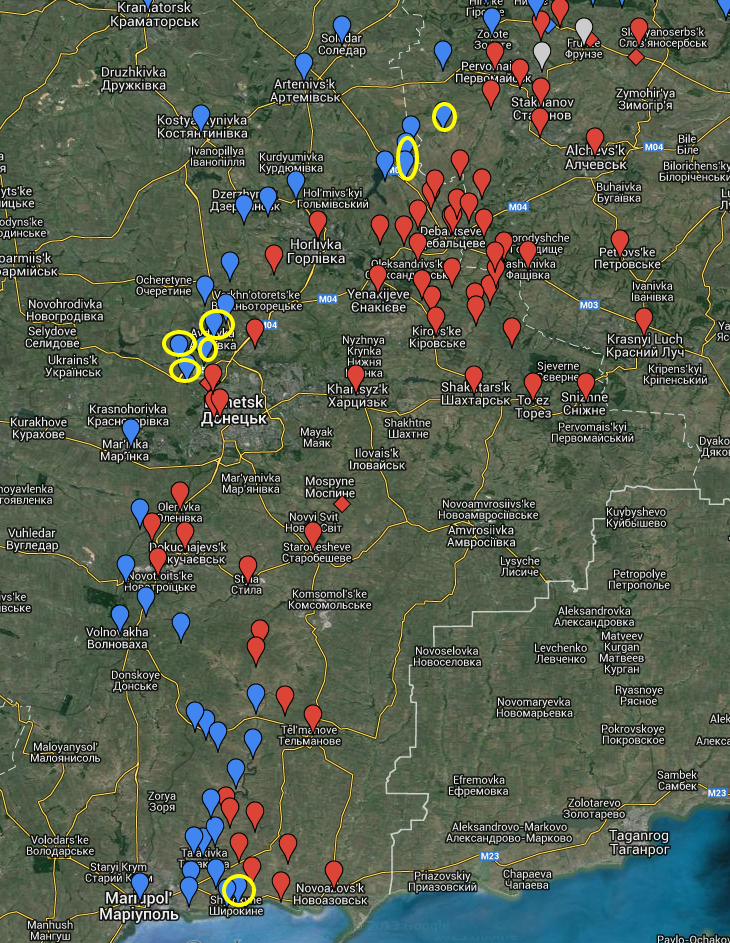 According to the military, mortar shells fell on Opytnoye, Peski, Avdeyevka and Krasnogorovka, all to the north of Donetsk.