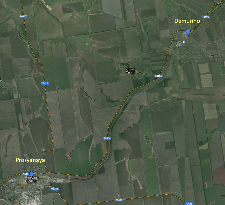 Berdianske (18km east of Mariupol, 3km west of Shyrokyne). Between