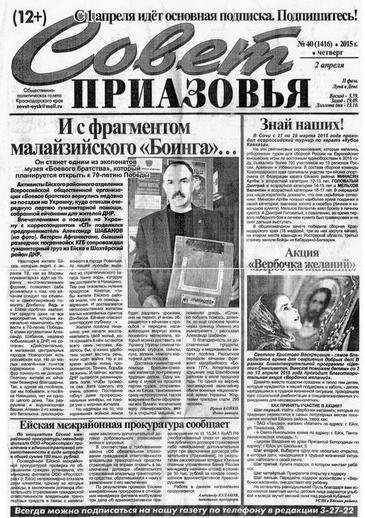 According to the Soviet Priazovya article, the fragment of the downed Boeing 777 airline was sent to Yeysk by residents of the village of Rasspynoye, on the outskirts of Torez, near the crash site, in exchange for humanitarian aid from the Russian town.
