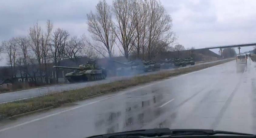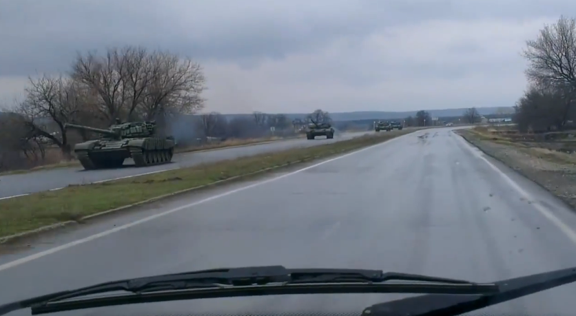 The following video was uploaded to YouTube on the evening of April 14. In it, a large convoy of T-72 tanks, most of them likely the B1 variant, can be seen headed down a highway near Lugansk, (as indicated by a road sign).