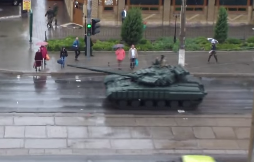 Translation: 02.05.15. Video from a resident of Lugansk// “Reinforcement has come to Lugansk. These kind of convoys are driving on the streets.”