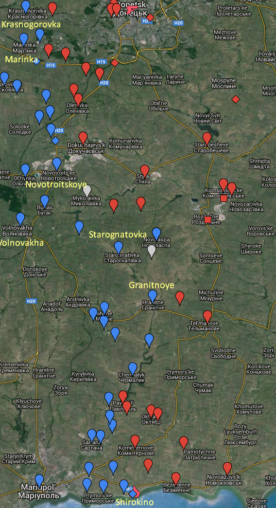 in an area of several towns where our team at The Interpreter has used Russian and Ukrainian social media to prove the presence