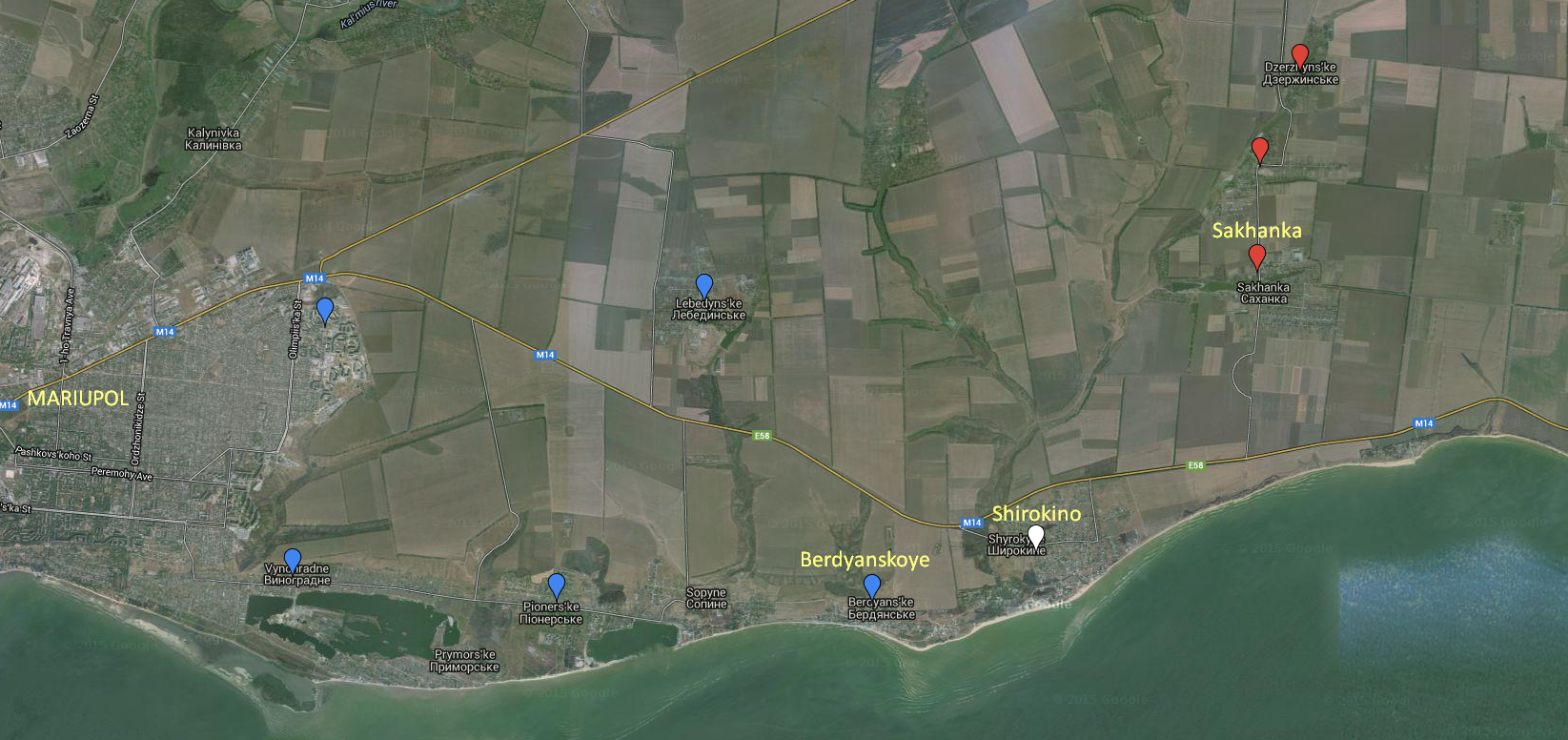However Andriy Biletsky, MP and founder of the Azov Battalion (now a regiment), told Ukraine’s 112 television channel today that the naval infantry were not in Shirokino itself but rear positions around Berdyanskoye, just to the west.
