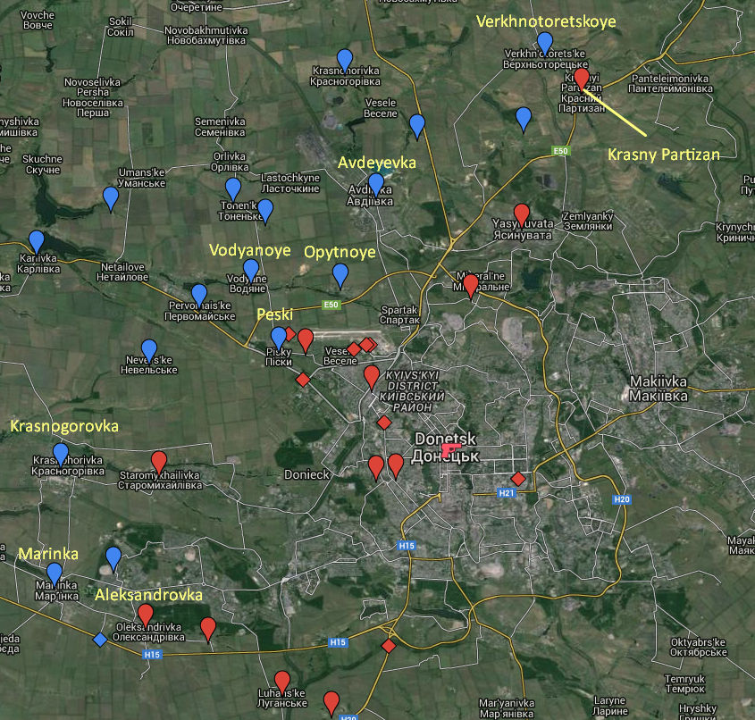 Residential areas of Avdeyevka, to the north-east, were, the Press Centre claims, shelled with 152 and 122 mm artillery at around 21:00 last night.